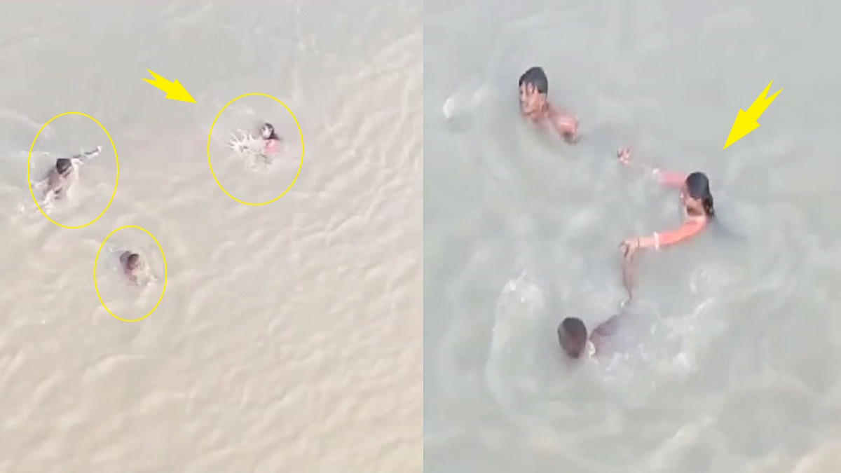 उधर, इस पूरी घटना का एक वीडियो सोशल मीडिया पर जमकर वायरल हो रहा है। वीडियो ऊपर पल से बनाया गया है। वीडियो में साफ़ देखा जा सकता है कि युवती पानी में संगर्ष कर रही है, जबकि दो युवक तैर कर उसके पास पहुंचने की कोशिश कर रहे हैं। कुछ ही सेकंड में युवक लड़की को पकड़ लेते हैं और उसे नदी से बाहर ले आते हैं।