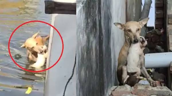 सोशल मीडिया पर वायरल वीडियो महादेवा नई बस्ती सीवान का है। जहां कुत्ते का एक बच्चा नाले में गिरा और डूबने लग गया। पपी को नाले में डूबता देख मां ने भी अपनी जान की परवाह नहीं की और नाले में छलांग लगा दी। काफी मशक्कत के बाद उसने अपने मुंह में बच्चे को दबाया और फिर तैरते हुए सुरक्षित बाहर निकाल लाई।