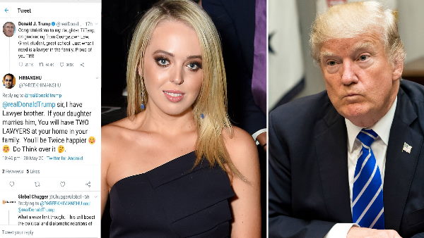 राष्ट्रपति डोनाल्ड ट्रप के इस ट्वीट के बाद लोग उन्हें बधाई देने लगे। कई यूजर्स ने तो उनकी बेटी को बहू बनाने तक का रिश्त कमेंट में भेजा दिया। ऐसा ही कमेंट राजस्थान के बीकानेर जिले की श्रीडूंगरगढ़ तहसील के युवक हिमांशु पारीक का था। हिमांशु पारीक ने ट्रंप के ट्वीट रीट्वीट करते हुए लिखा कि' सर मेरा भाई वकील है। अगर आप अपनी बेटी टिफनी की शादी मेरे भाई से करवा देते हैं तो आपके घर और परिवार में दो-दो वकील हो जाएंगे। आप इस रिश्ते पर विचार करें।