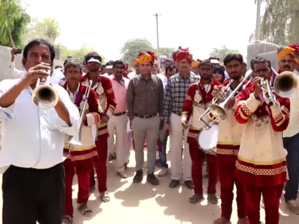 बारात में बैंड की सुमधुर स्वर लहरियों के बीच आगे आगे बैंड चल रहा था। बीच में घोड़ों पर सवार लोग और पीछे-पीछे पगड़ी पहने बाराती। आश्चर्य में पड़ गए ना। जी हां यह थी बीकानेर निर्वाचन विभाग द्वारा शत प्रतिशत मतदान को लेकर निकाली गई वोट की बारात, जिसमें अधिकारी बने बाराती और ग्रामीण बने स्वागतकर्ता।