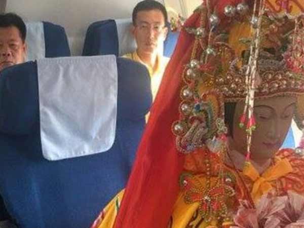 नई दिल्ली। अभी तक आपने इंसानों को तो बिजनेस क्लास में सफर करते खूब देखा होगा लेकिन क्या किसी देवता की प्लेन में सफर करने की बात आपको सुनाई दी है। दरअसल, चीन में ऐसा ही मामला सामने आया है। यहां एक कल्चरल इनॉग्रेशन इवेंट के तहत इन देवता की प्रतिमाओं को बिजनेस क्लास की टिकट पर मलेशिया व सिंंगापुर तक ले जाया गया। उनके लिए बकायदा 921 डॉलर खर्च करके बिजनेस क्लास का टिकट खरीदकर रिजरवेशन कराया गया। जिसने उन्हें इंसानों की तरह प्लेन में बैठा देखा, वो चकित रह गया।
