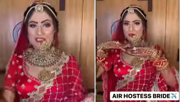 VIDEO: एयर होस्टेस दुल्हन ने लंहगे में दी प्री-फ्लाइट सेफ्टी ब्रीफिंग, यूजर बोले-ऑसम