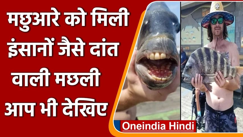 मछुआरे के हाथ लगी अजीबो-गरीब मछली, इंसानों जैसे दांत, शरीर पर काली-सफेद धारियां
