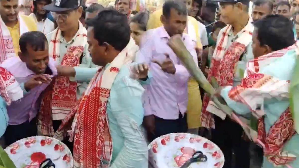 Asam MLA Viral Video: लाल की जगह गुलाबी रिबन देख भड़के विधायक, कर्मचारी को केले के तने से पीटा, देखें VIDEO
