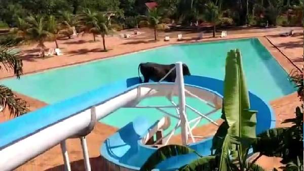 दरअसल, गाय को रियो डी जनेरियो से 500 मील दूर स्लॉटर हाउस भेजने के लिए रखा गया था, जहां से वो एक खेत से भागकर पास के वाटर पार्क में जा घुसी और फिर जैसे-तैसे वाटर स्लाइड पर चढ़ और फिसलने लगी। जानकारी के मुताबिक 317 किलो की इस गाय की स्लॉटर हाउस में जान जाना तय था, लेकिन यह अपने बाड़े से मुक्त हो गई और थोड़ी देर के लिए इधर-उधर भटकते हुए पास के एक खुले में स्विमिंग पूल में पहुंच गई।