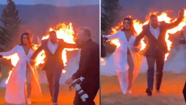 दोनों की पीठ से आग की लपटें निकल रही थीं, जिसको देख सभी हैरान रह गए। हालांकि खास केमिकल की वजह से उनके कपड़े और शरीर पूरी तरह से सुरक्षित रहा। वहीं सुरक्षा के लिए उन दोनों के पीछे एक शख्स आग बुझाने वाला उपकरण लेकर चल रहा था। फिलहाल अब दोनों शादी के बंधन में बंध चुके हैं।