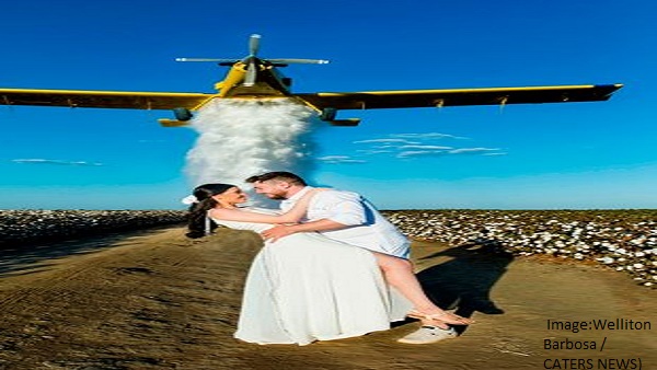 ब्रिटेन के इस जोड़े ने अपने वेडिंग फोटोशूट को दूसरों से हटकर बनवाने के लिए प्लेन से आर्टिफिशियल बारिश करवाई और कृत्रिम इंद्रधनुष बनवाकर फोटो खिंचवाई। अपने फोटोशूट को यादगार बनवाने के लिए उन्होंने इंद्रधनुष के साथ तस्वीर खिचवाने का फैसला किया। इंद्रधनुष ऐसे तो तैयार होता नहीं इसलिए उन्होंने इसके लिए आर्टिफिशियल बारिश करवाई। जोड़े को फोटोशूट के लोकेशन पर ले जाया गया, जहां उनके ऊपर 900 लीटर ठंडा पानी डाला गया, जिसके बाद वहां इंद्रधनुष बना और फिर उनकी बेहतरीन फोटो खींची गई।
