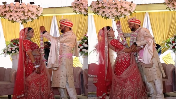 देसी शादियों में आजकल दूल्हा-दुल्हन खाने-पीने से लेकर नाचगाना और नई-नई रस्मों से खूब एन्जॉय करते हैं। आजकल शादियों में एक ट्रेंड सबसे ज्यादा देखने को मिलता है और वो है वरमाला के दौरान एक-दूसरे को सरप्राइज करना। आजकल शादियों में वरमाला के दौरान दूल्हा-दुल्हन को गोद में उठा लेना या फिर वरमाला के दौरान बचकर भागना ये ट्रेंड बन गया है। ऐसी ही एक शादी का वीडियो इन दिनों इंटरनेट पर तेजी से वायरल हो रहा है।