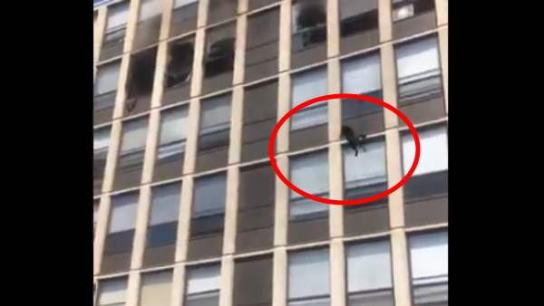 45 सेकंड के इस वीडियो में देखा जा सकता है कि एक बहुमंजिला इमारत की पांचवीं मंजिल से काले धुएं का गुबार बाहर निकल रहा है। वीडियो में आग की वजह से पिघले खिड़कियों के कांच को भी देखा जा सकता है। तभी एक खिड़की से काली बिल्ली बाहर की ओर भागती है और देखते ही देखते छलांग लगा देती है। बिल्डिंग से बिल्ली को गिरते देख आस-पास के लोगों की चीख निकल जाती है।