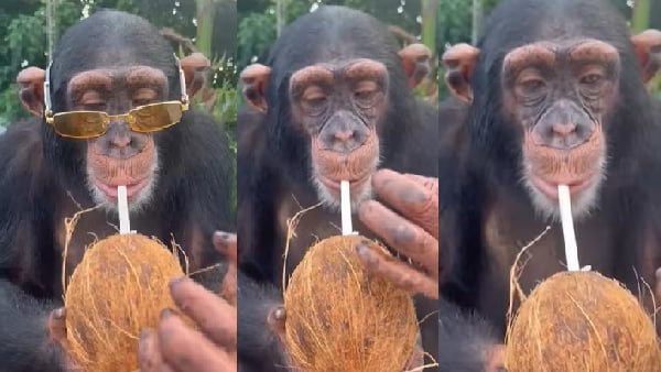 Chimpanzee viral VIDEO: चश्मा पहनकर आशिकाना मिजाज में नारियल पानी पी रहा चिंपैंजी, स्टाइल के कायल हुए लोग
