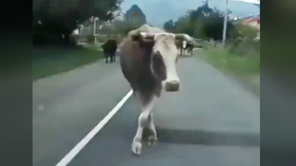 वीडियो में देखा जा सकता है कि एक गाय सड़क पर अजीब तरह से चलती दिखाई दे रही है। किसी वाहन पर लगे डैश कैम में रिकॉर्ड हुई ये क्लिप सोशल मीडिया पर काफी वायरल हो रही है। सामान्य तौर पर गाय ऐसे नहीं चलती जैसा वीडियो में देखा जा सकता है, गाय के पैर रखने का स्टाइल देख हरकोई हैरान है। यूजर्स गाय की चाल को कैटवॉक बता रहे हैं।