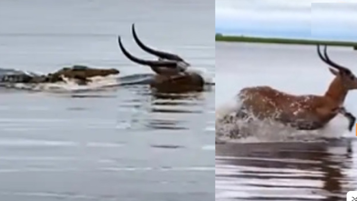 किनारे आने से पहले मगरमच्छ ने मृग पर हमला कर दिया। मृग ने बड़ी तेजी से मगरमच्छ के चंगुल से बच निकले। छलांग मारते मारते नदी के उस पार चला गया। मगरमच्छ देखते रह गया। वीडियो का क्लाइमेक्स रोंगटे खड़ा कर दे रहा है।