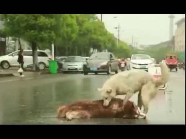 चीन में सड़क हादसे में अपने दोस्त के मारे जाने के बाद कुत्ता जिस तरह उसे उठाने की कोशिश करता है उसे देखकर आपकी आंखें भर जाएगी। चीन में कार की टक्कर से एक कुत्ता मर जाता है। सड़क के बीचों-बीच उसकी लाश पड़ी रहती है, तभी उसका दोस्त उसे उटाने की कोशिश करता है।