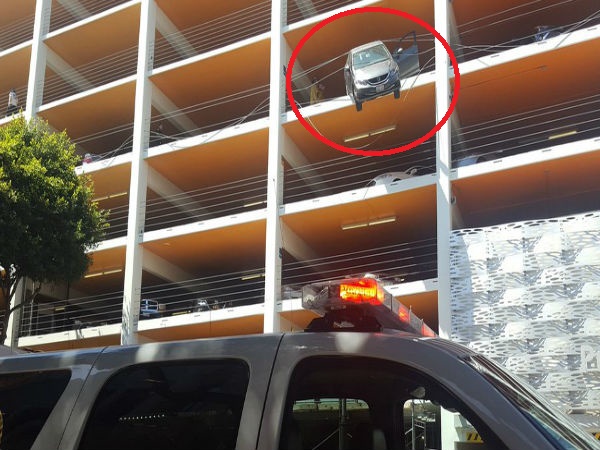 सैंटा मोनिका फायर ब्रिगेड द्वारा ट्विटर पर इस बारे में जानकारी दी गई है। रिपोर्ट्स के मुताबिक यह गाड़ी एक बुजुर्ग महिला चला रही थी। महिला ने बताया कि वो पार्किंग से कार निकालने की कोशिश कर रही थी। इसी दौरान गलती से उसने ब्रेक पेडल की जगह एक्सलेटर दबा दिया, जिसकी वजह से गाड़ी की स्पीड बढ़ गई और गाड़ी पार्किंग के सामने लगे रॉड को तोड़ते हुए हवा में लटक गई। कार की रफ्तार की वजह से वो बैनर को तोड़ते हुए कार पार्किंग के किनारे आकर लटक गई।