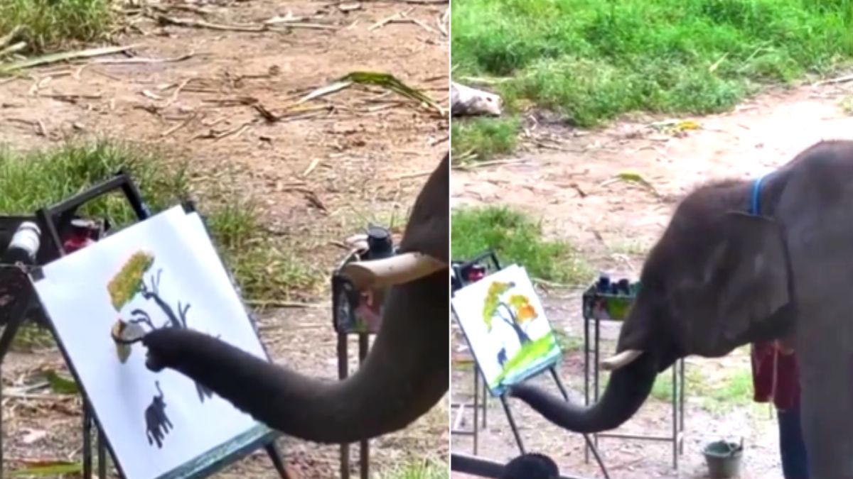 सूंड से ब्रश पकड़कर हाथी ने बनाई ऐसी पेंटिंग, वीडियो देखकर लोगों को खुद पर आने लगी शर्म