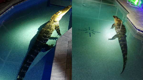स्विमिंग पूल से आवाजें सुनकर जागा परिवार, देखा तो तैर रहा था 11 फीट लंबा मगरमच्छ