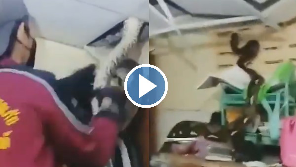 Watch Video: छत फाड़कर बाहर निकला खतरनाक अजगर, दुकान के ट्रायल रूम में मची भगदड़!