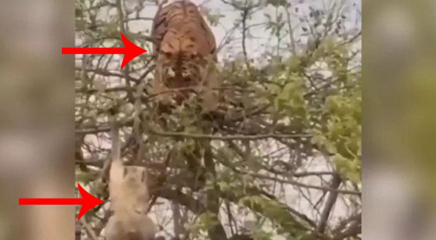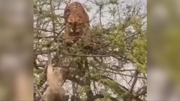 वीडियो में एक विशालकाय चीता बंदर का शिकार करने लिए पेड़ पर चढ़ा हुआ दिखाई दे रहा है। उससे थोड़ी ही दूरी पर पेड़ की एक डाली पर एक बंदर बैठा है। चीता उसका शिकार करने के लिए उसकी ओर धीरे-2 बढ़ता है, जबकि बंदर एक हाथ से पेड़ की एक टहनी को पकड़कर चीते की आंखों में आंखें डालकर उसका सामना कर रहा है।