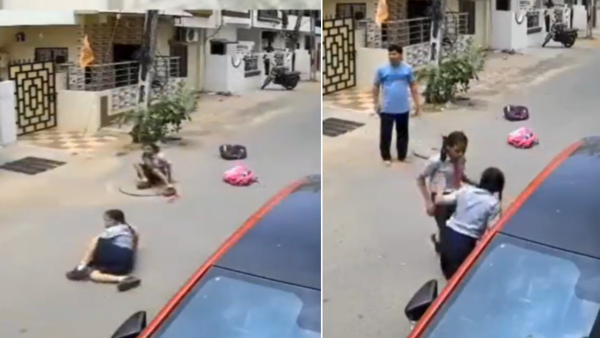 इस बीच एक बच्ची रोने लगी और फिर दूसरी ने उसे गले लगाकर संभाला। इसके बाद लोग उन बच्चियों को सामने के एक घर में लेकर गए। पुलिस अधिकारी प्रणव कटारिया ने इस घटना की जानकारी देते हुए बताया कि वीडियो में दो लड़कियां रिहायशी सोसायटी के अंदर सड़क पर स्कूल वैन से गिरती नजर आ रही हैं।