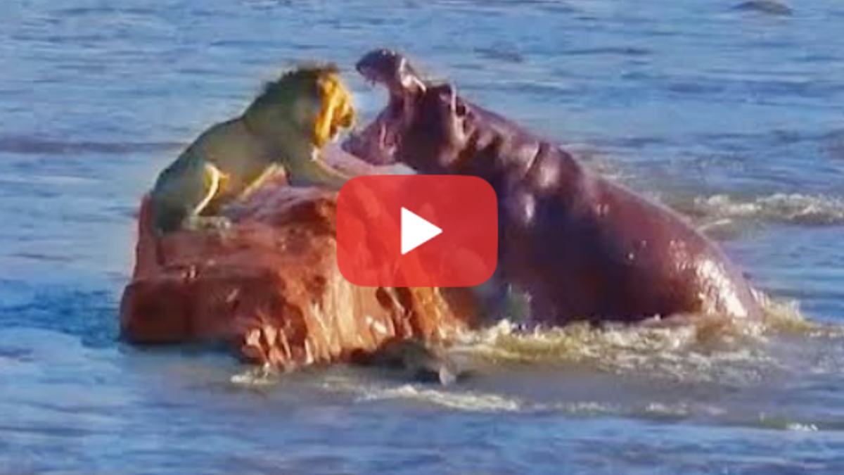Lion Video: पानी के बीच चट्टान पर आराम कर रहा था शेर, तभी हिप्पो को आ गया गुस्सा