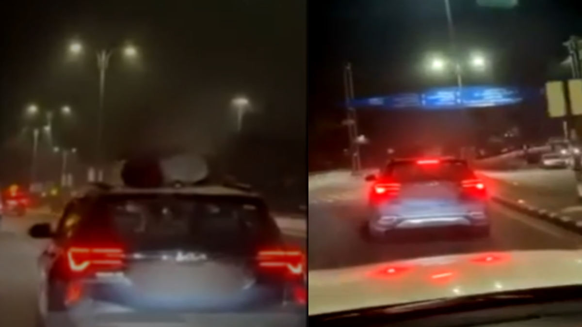 छोटी क्लिप में सफेद टी-शर्ट पहने शख्स को KIA Seltos के सनरूफ से महिला को कई बार चूमते देखा जा सकता है। आगे दोनों एक-दूसरे से बात करते और कार से नजारे का आनंद लेते नजर आ रहे हैं। कुछ सेकंड बाद वो अपना हाथ उठाता है और आसमान की ओर इशारा करता है।