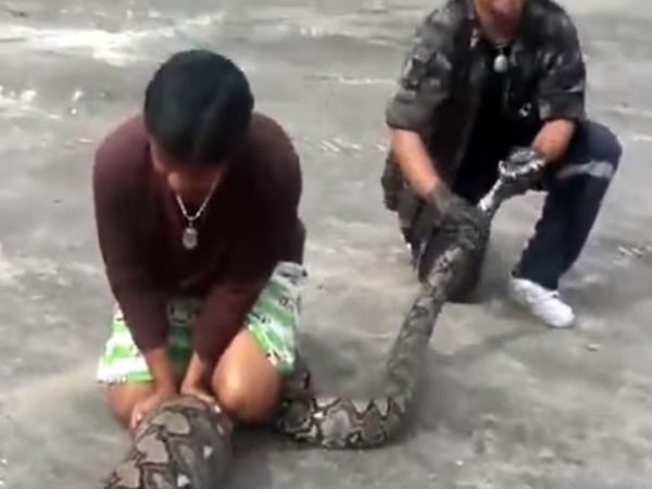 रेस्क्यू टीम ने देखा कि अजगर काफी बारी था और उसके पेट में उभार दिख रहा था। अजगर ने कोई ताजा-ताजा शिकार किया था। रेस्क्यू टीम ने अजगर को जंगल से बाहर निकाला। इसके बाद रेस्कयू टीम ने अजगर का शिकार बाहर निकालने के लिए जो किया, उसे देख वहां खड़े लोग भी सहम गए। रेस्कयू टीम ने अजगर की मसाज शुरू कर दी।