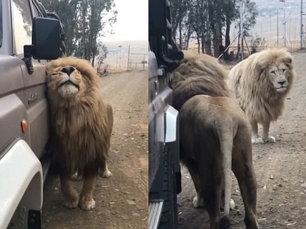 शेर गाड़ी से अपना चेहरा सटा-सटा कर उसे प्यार करने लगा। वो एक पल भी उससे हटने को तैयार नहीं है। साथ में जब एक और शेर आया, वो तब भी नहीं हटा। वीडियो को अपलोड करने वाले शख्स ने शेर का नाम शेन रखा है।