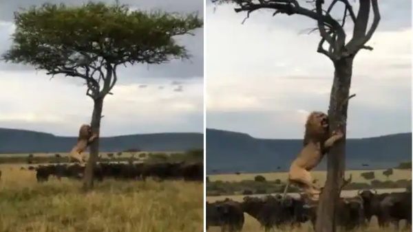 इस जानवर के डर से पेड़ पर चढ़ा जंगल का राजा, शेर को जान बचाना हुआ मुश्किल