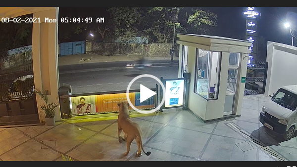 शेर का ये फेमस वीडियो राज्यसभा एमपी परिमल नाथवानी ने शेयर किया है। वीडियो में एक शेर घूमता हुआ जूनागढ़ रेलवे स्टेशन के पास बने सरोवर पोर्टिको होटल में सुबह 4 बजे के आसपास घुसता है। शेर होटल के गेट को जंप कर अंदर घुसता है। होटल के गेट पर तैनात सिक्योरिटी गार्ड शेर के अंदर घुसते देख लेता है, लेकिन डर के मारे वह अपने कैबिन से बाहर नहीं निकलता है।