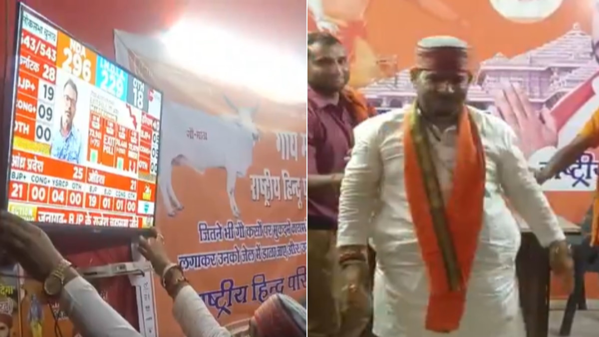 एनडीए को 400 सीटें नहीं मिलने पर RHP के अध्यक्ष गोविंद पाराशर ने टीवी ही तोड़ डाला। सोशल मीडिया पर एक वीडियो वायरल भी हो रहा है, जिसमें उनकी हताशा को साफतौर पर देखा जा सकता है।