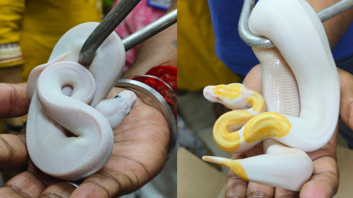 दरअसल, बेंकॉक से आ रहे यात्री को जब एयरपोर्ट अधिकारियों ने रोका तो उसके सामान की जांच करने के बाद जो मिला, उसने सभी को हैरान कर दिया। यहां यात्री ने बिस्टिक के पैकेट के अंदर नौ बॉल पायथॉन और दो कॉर्न स्नेक छिपाए हुए थे।