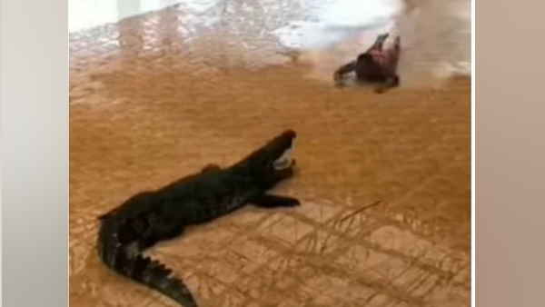 फर्श पर आराम कर रहे मगरमच्छ के मुंह में चला गया शख्स
