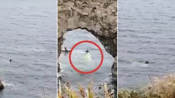 VIDEO: समुद्र के ऊपर उड़ता हुआ दिखाई दिया एक शख्स, कैमरे में कैद हो गया अनोखा नजारा