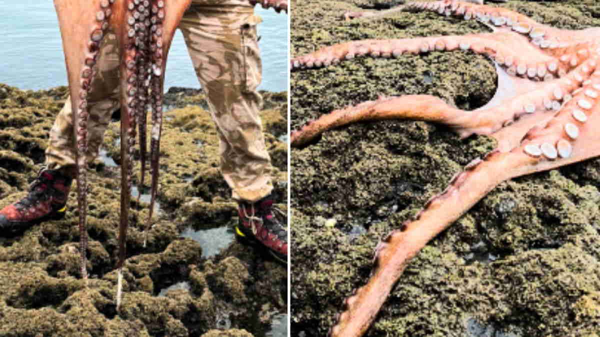 Monster Octopus found: एक शख्स और उसकी बेटी के उस वक्त होश उड़ गए, जब समंदर के किनारे उन्होंने एक बड़े से ऑक्टोपस को देखा। ये आम ऑक्टोपस नहीं बल्कि एक मॉन्स्टर ऑक्टोपस था।