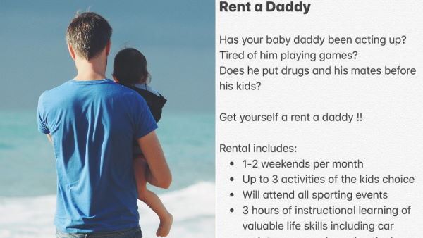 नई दिल्ली। आपने किराए पर घर, सामान, कार और जमीन लेने के बारे में तो सुना और देखा होगा, लेकिन कभी आपने सुना है कि, किराए पर बच्चों के लिए पिता भी मिलते हैं। वह भी बहुत सारी खूबियों के साथ। जी हैं ऐसा एक मामला ऑस्ट्रेलिया में देखने को मिला है। एक आस्ट्रेलियाई शख्स ने माताओं को किराए पर डेडी की सेवाएं देने की पेशकश की है। शख्स ने इस जॉब के लिए बकायदा एक विज्ञापन भी जारी किया है। ये फनी विज्ञापन सोशल मीडिया पर जमकर वायरल हो रहा है।