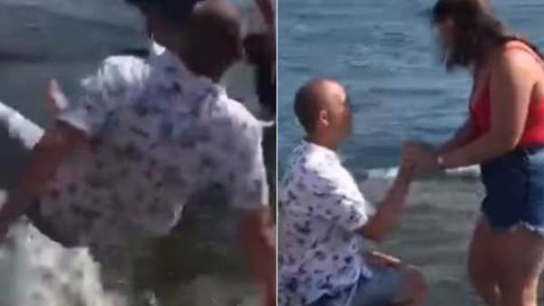 समुद्र किनारे लड़की को प्रपोज करना पड़ गया भारी, पैर फिसलते ही इस शख्स की हो गई ऐसी हालत- देखें Viral Video