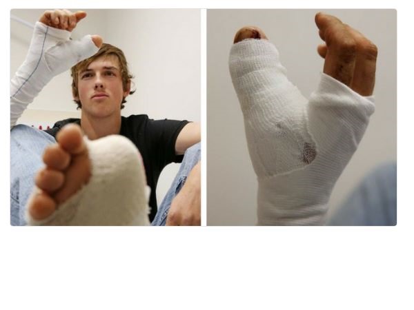 पर्थ। ऑस्ट्रेलिया में एक विचित्र मामला सामने आया है। एक शख्स के हाथ का अंगूठा कटने पर डॉक्टरों ने पैर का अंगूठा काट कर लगा दिया। 20 वर्षीय मिचेल के एक हाथ का अंगूठा बैल के लात मारने के वजह से टूट गया था और उसके बाद डॉक्टरों ने पैर के अंगूठे को निकाला और उसे टूटे हुए हाथ के अंगूठे की जगह जोड़ दिया।