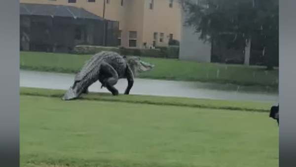 मीडिया रिपोर्ट के मुताबिक वायरल हो रहा ये वीडियो बुधवार का है जब एक विशालकाय मगरमच्छ को नेपल्स (Naples) में वालेंसिया गोल्फ और कंट्री क्लब के मैदान में चहलकदमी करते देखा गया। बता दें कि फ्लोरिडा में बड़े मगरमच्छ देखना कोई नई बात नहीं है, वहां इस साइज के एलिगेटर अक्सर दिखाई देते रहते हैं। लेकिन सोशल मीडिया पर इस जायंट मगरमच्छ को देख यूजर्स के होश उड़ गए हैं।