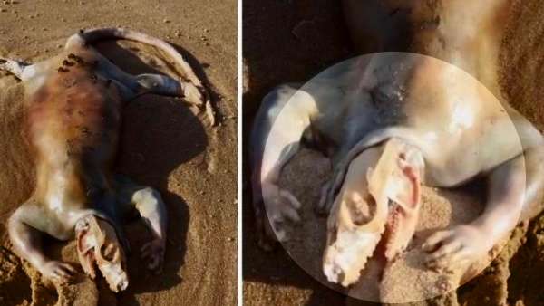 वायरल हो रहे वीडियो में दिख रहे इस जीव के 4 पैर हैं। उसका शरीर फूला हुआ है तथा उसकी चूहे जैसी काफी लंबी एक पूंछ है। उसके सिर से लगभग सारा मांस निकल चुका है और खोपड़ी दिख रही है, जो किसी रेंगने वाले जीव जैसी है। इस जीव के शरीर पर एक भी बाल नहीं है। इससे पहले भी कैलिफोर्निया में साल 2021 में ऐसे कई जीव समंदर किनारे पाए जा चुके हैं, जिन्हें पहचानने में दिक्कत हुई थी।