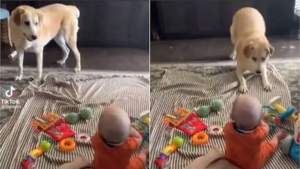 सोशल मीडिया पर एक वीडियो खूब वायरल हो रहा है। इसमें एक प्यारा सा कुत्ता अपने मालिक के बच्चे का इस तरह से मनोरंजन कर रहा है मानो वह उसी का बच्चा हो।