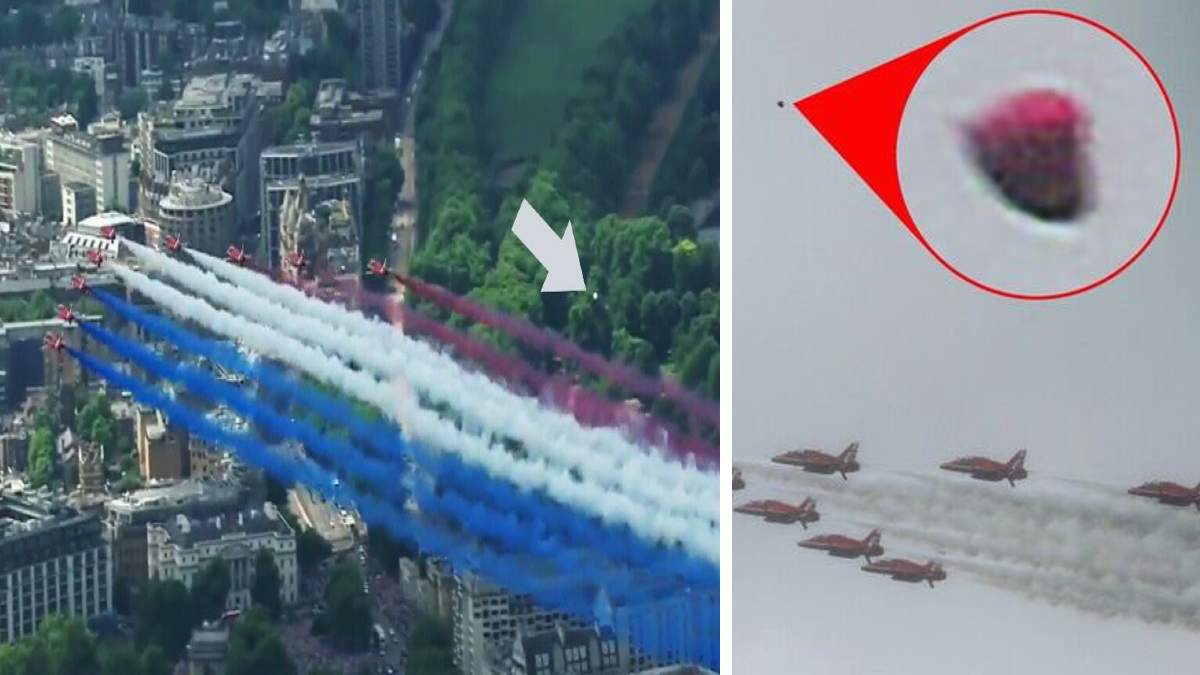 वायरल फोटो में आप देख सकते हैं कि ताजापोशी के दौरान ब्रिटिश एयरफोर्स के जहाज हवा में मार्च कर रहे थे, तभी एक रहस्यमयी चीज वहां से गुजरी। उसकी रफ्तार और ऊंचाई काफी ज्यादा थी। फोटोग्राफर ने जूम करके उसकी अलग फोटो जारी की है। साथ ही दावा किया कि वो एलियंस का यान था।