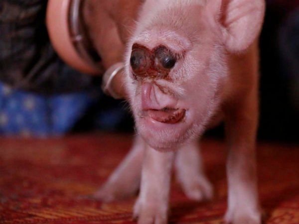 बंदर जैसे चेहरे के साथ पैदा हुआ बेबी पिग, अपने बच्चे की तरह पाल रहा है मालिक