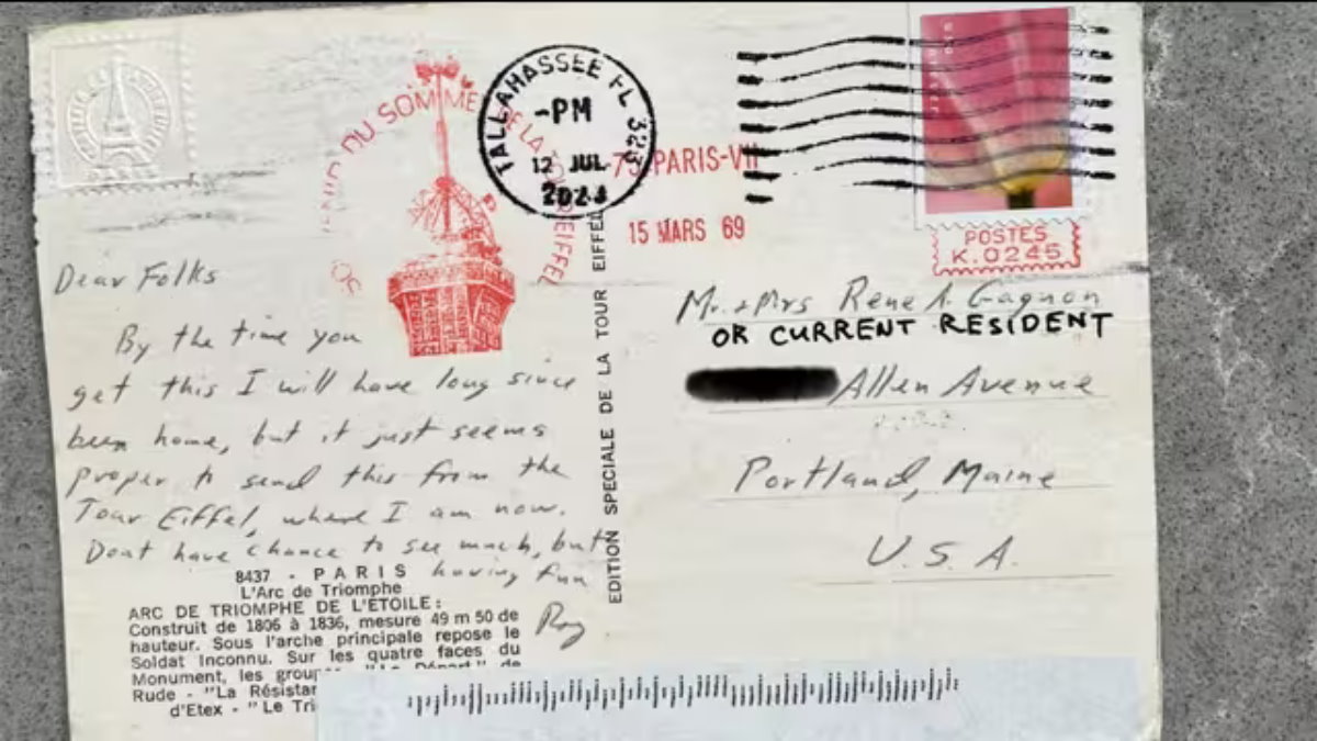 53 साल पहले भेजे गए पोस्टकार्ड पर 12 जुलाई, 2023 का टालहासी, फ्लोरिडा का नया पोस्टमार्क लगा हुआ है। महिला ने लिखा उन्होंने लिखा इसमें जानबूझ कर पूर्व या वर्तमान निवासी के नाम पर एड्रेस करते हुए भेजा गया और नया डाक टिकट जानबूझकर लगाया गया था, तो यह पेरिस से टालहासी से मेन तक कैसे पहुंचा?