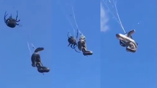 मकड़ी के शिकार के दो वीडियो वायरल
