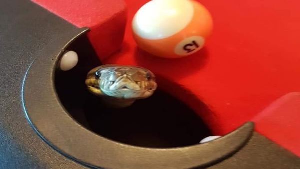 पूल खेलते हुए टेबल के पॉकेट से झांक रहा था अजगर, लोगों की नजर पड़ते ही...