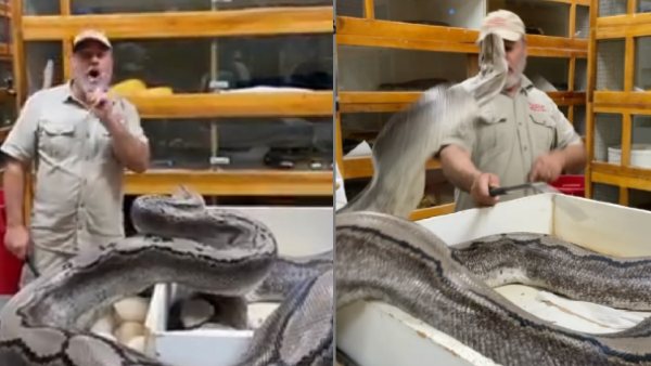 VIDEO: जैसे ही शख्स ने हटाई अजगर से नजर, वैसे ही उसने किया हमला, 1 सेकंड में बदल गया खेल