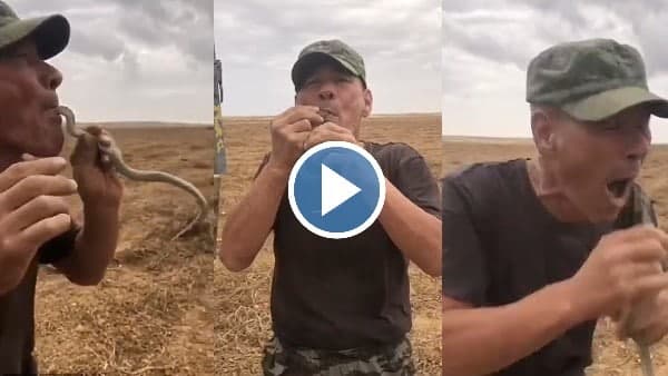 Video: मजदूर ने जिंदा सांप को मुंह में डाला, दो बार बचा, तीसरी बार में 'खेल खत्म'