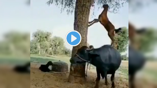 दरअसल, खेजड़ी (जांटी) के एक पेड़ के नीचे एक भैंस और एक बकरी खड़ी हैं। बकरी को भूख लगी है। वह खेजड़ी के पत्ते (लूंग) खाना चाहती है, मगर वो उसकी पहुंच से दूर हैं। ऐसे में बकरी ने जुगाड़ लगाया और छलांग मारकर वह खड़ी भैंस की पीठ पर चढ़ गई और फिर दो पैर खेजड़ी के तने से लगाकर भैंस की पीठ पर खड़ी हो गई। इसके बाद वह आसानी से लूंग खाने लगी। भैंस ने भी इस दौरान उससे यारी दिखाई।
