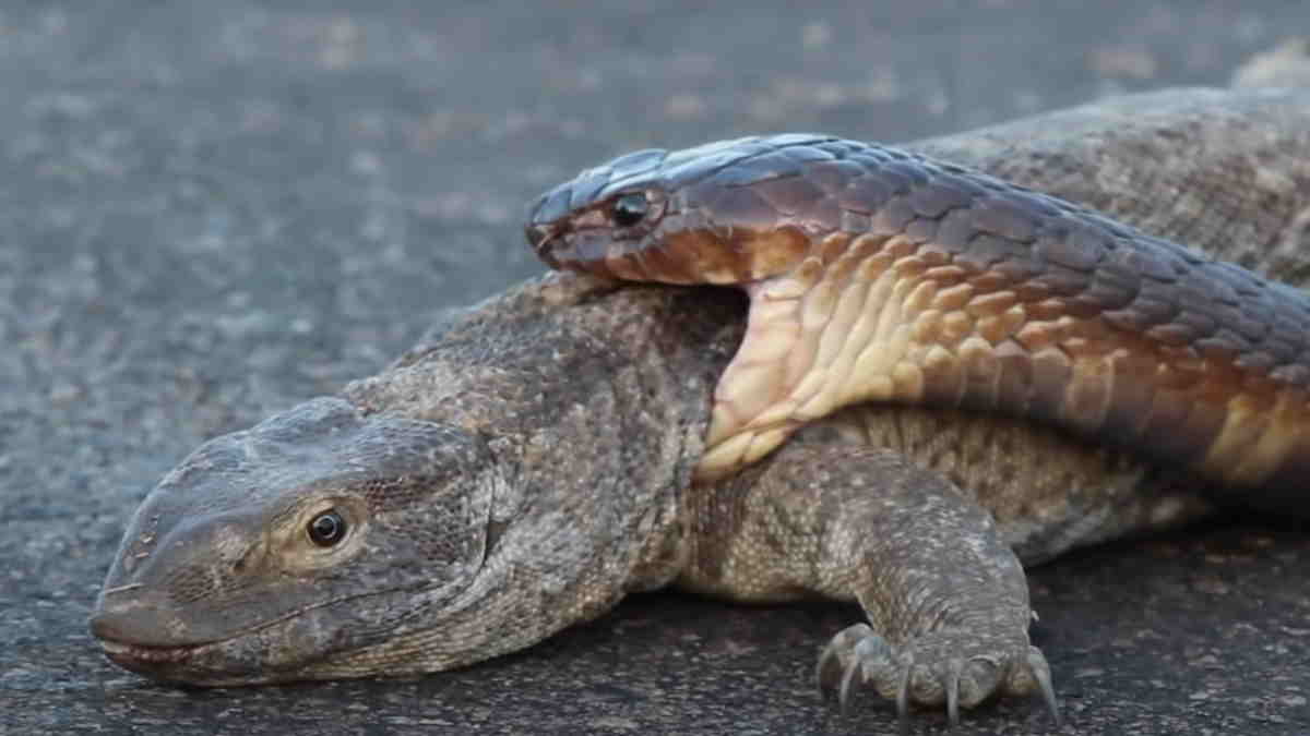 वीडियो को फिल्माने वाली हेलन के मुताबिक कैंप को छोड़ते ही उनको ये नजारा दिखा था। पास आने पर पता चला कि बड़ी छिपकली और कोबरा में जंग चल रही। दोनों बीच सड़क पर ही लड़ रहे थे। छिपकली के ऊपर कई घाव थे, लेकिन वो चलती रही। अंत में सांप पर्यटकों के कार के पास पहुंचा और वो डर गया। इसके बाद वो वहां से भाग निकला, जबकि घायल छिपकली जंगल में चली गई।