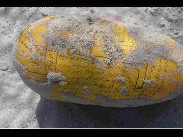 दुबई के पास मिला विचित्र फल, जिस पर अरबी में छपा है संदेश, लगी हैं कीलें